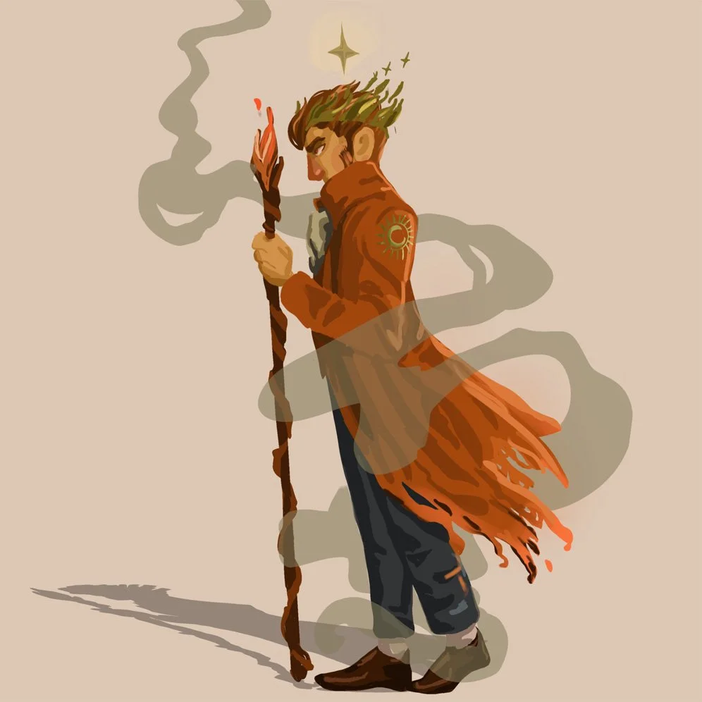 Since God created certain forms of light that bring life, I wanted to contrast this with a form of light that brings death—fire. I covered Syme in flames to represent the destruction of good light. Fire not only brings death and destruction to the earth, but its smoke also obscures the sun and moon, blocking their good light.
