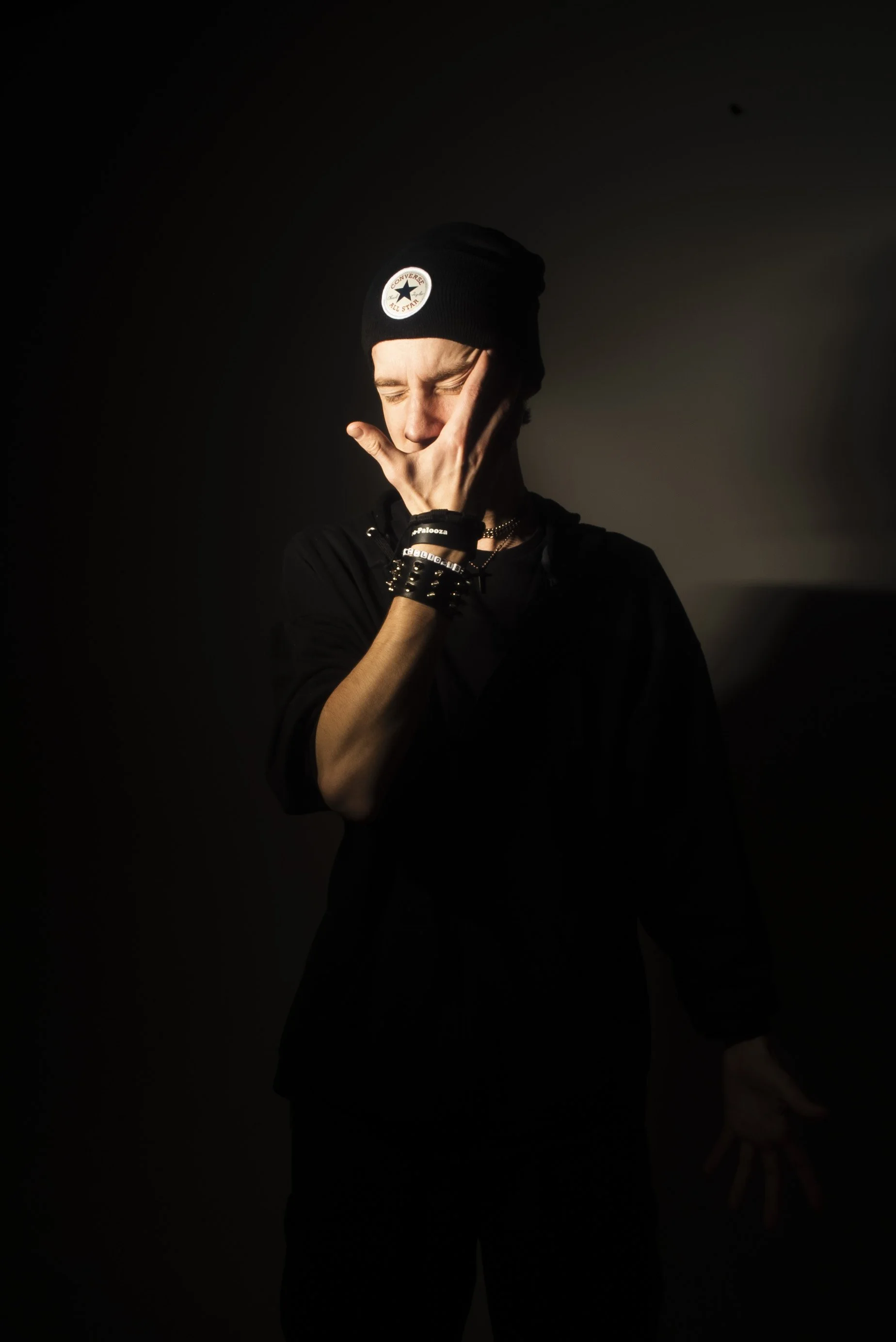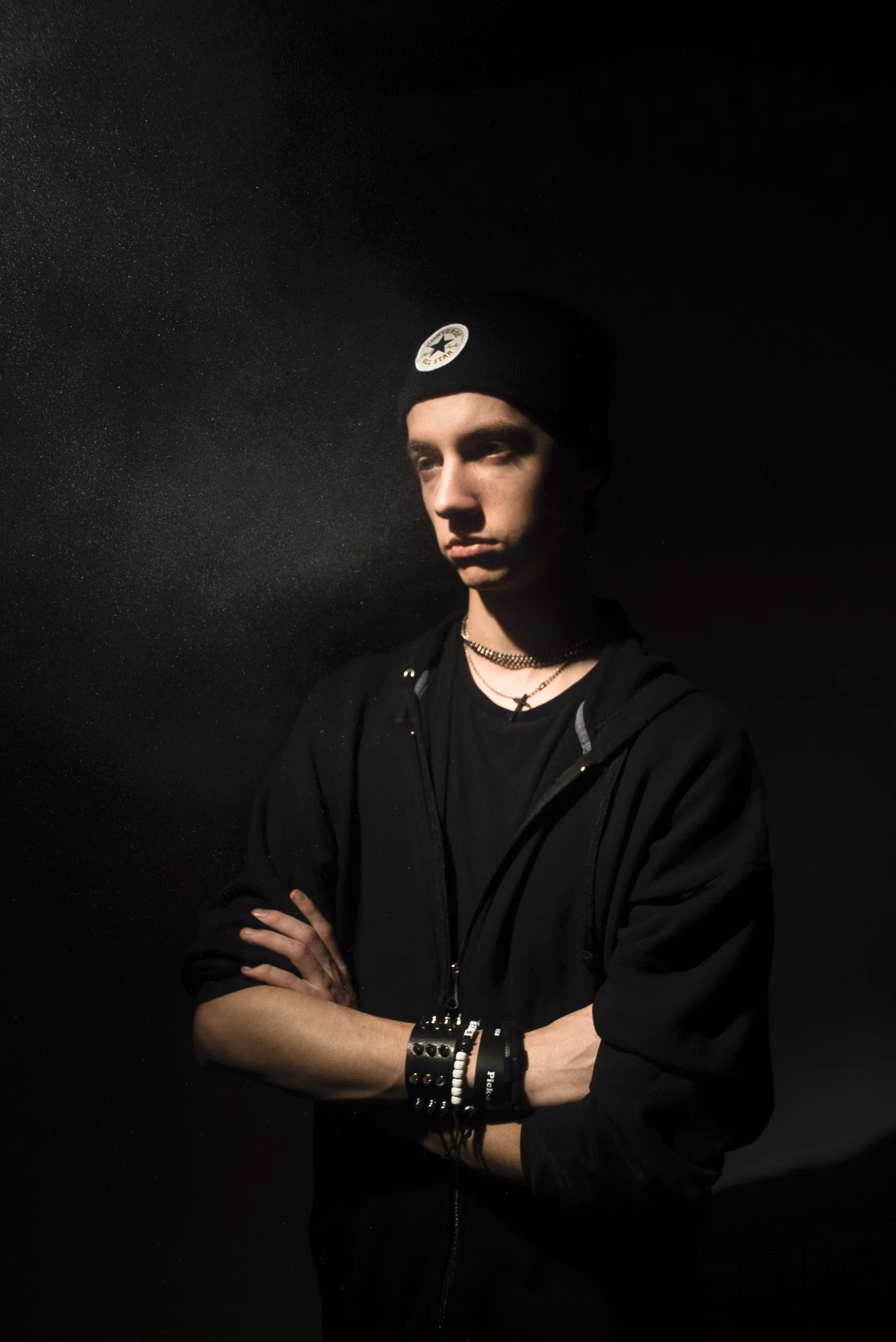 Then, I added a red light. I wanted to see if I could highlight his face with a snoot, which helps focus the light precisely where I wanted it.
